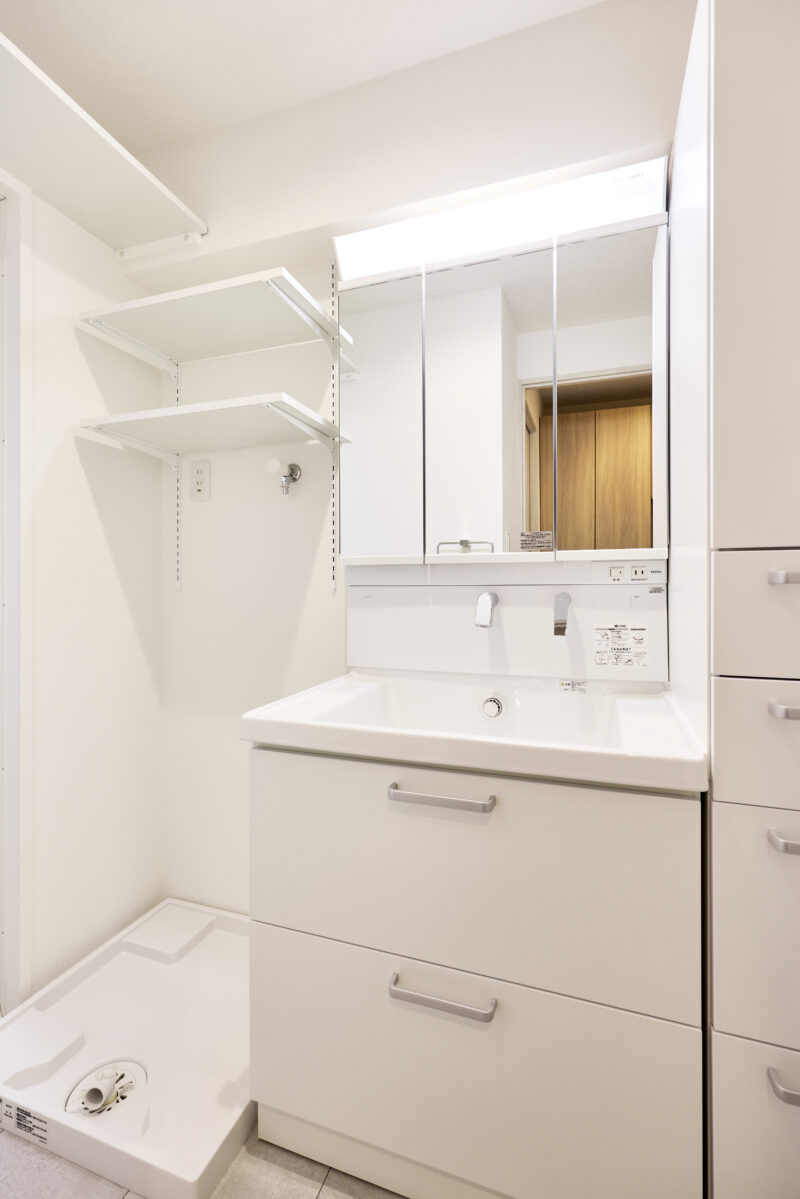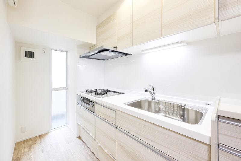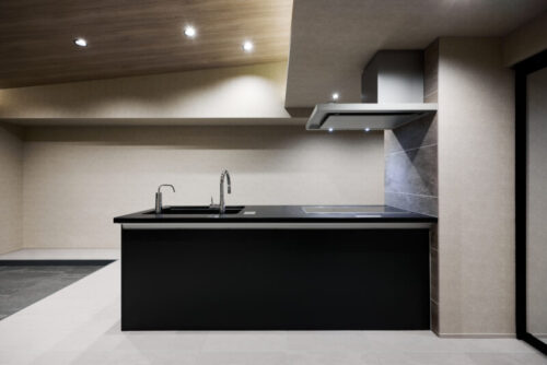 キッチンはお施主さまのご要望に合わせ、機能を最小限に絞ったシンプルなデザインを採用。その一方で、愛猫のための工夫にはしっかりとコストをかけています。ペット用シートを巻いたキャットウォークや、衝撃吸収・消臭機能を備えたペット用クッションフロアを取り入れることで、人も猫も快適に暮らせる空間に仕上げました。