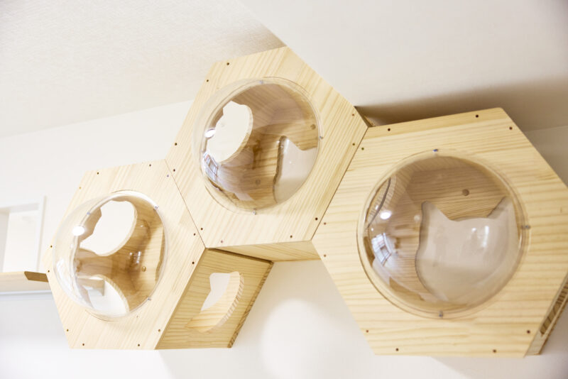 猫用のステップなど施主支給の家具も多く取り入れられました。中には海外のネット通販で購入されたものもあり、実際のサイズが異なるケースも。そうした場面では職人やお施主さまと細かくコミュニケーションを取り、その都度最善の方法を検討したことで、大きなトラブルにはつながりませんでした。