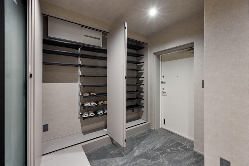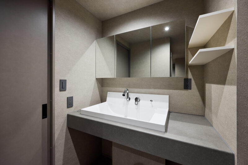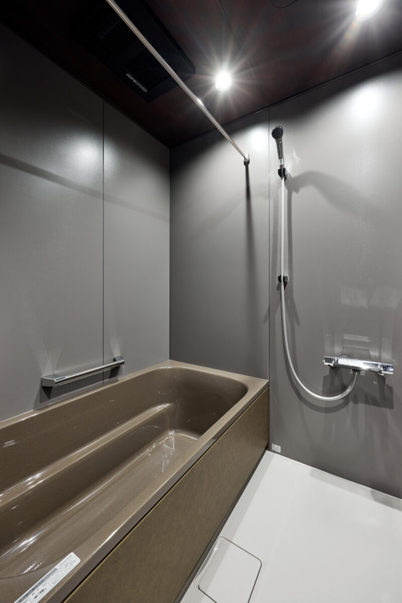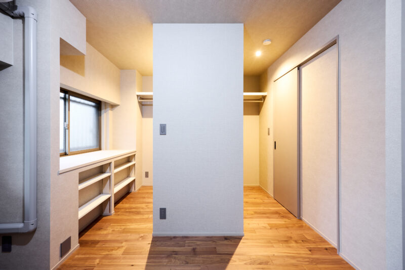 特にコストをかけたのは住宅設備。色や質感にこだわったキッチン、グレーの色味が選べるユニットバス、レザー調の質感を取り入れた建具など、上質さを感じられる仕様を選びました。 一方で、コストを抑える工夫も随所に。例えば床材は、お施主様のご希望に沿いながら、より価格を抑えられる代替案をQUMAが提案し採用いただきました。また、寝室の収納はあえて扉を設けず、コストダウンと収納力アップの両立を実現しています。